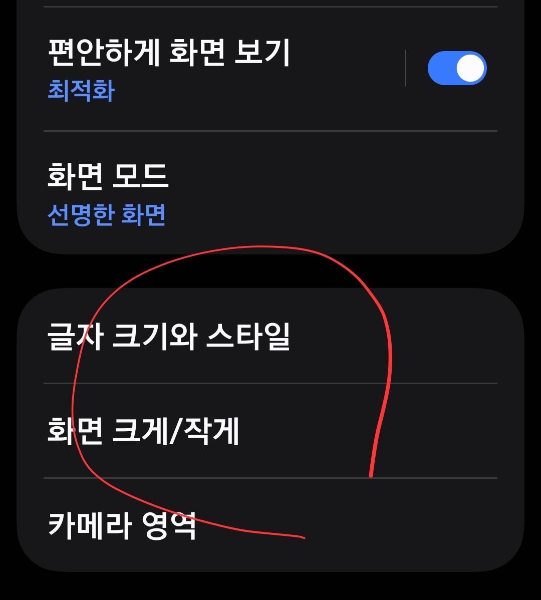 설정 → 디스플레이 → Easy Mode를 켜면 글자와 아이콘이 커지고 인터페이스가 단순해집니다.