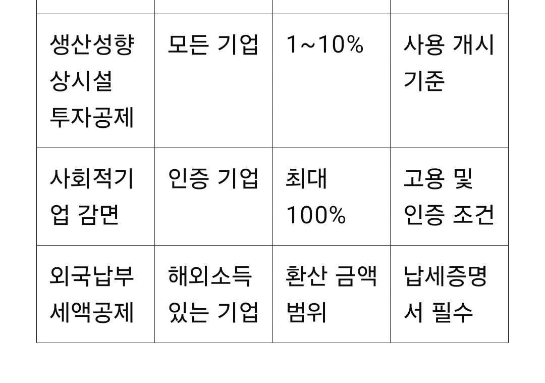 공제율: 1~10% (투자유형 및 기업 규모에 따라 차등)