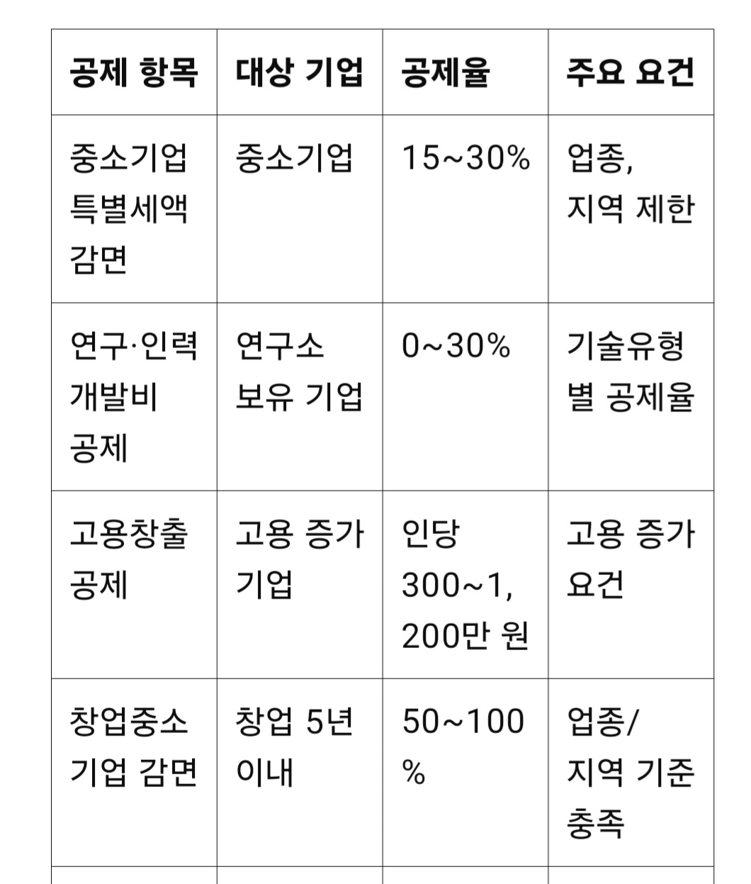 적용 조건: 소기업 또는 중기업, 업종 및 지역 요건 충족