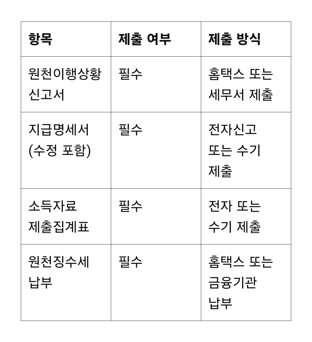 전자신고와 수기 제출 시 유의사항