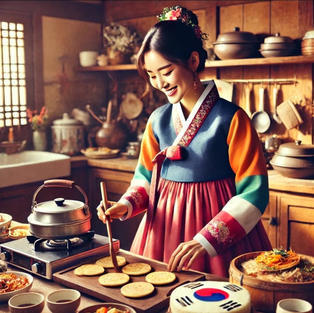 이른 아침에 차례를 마친 후 가족이 음식을 나누며 설날의 하루를 시작합니다.