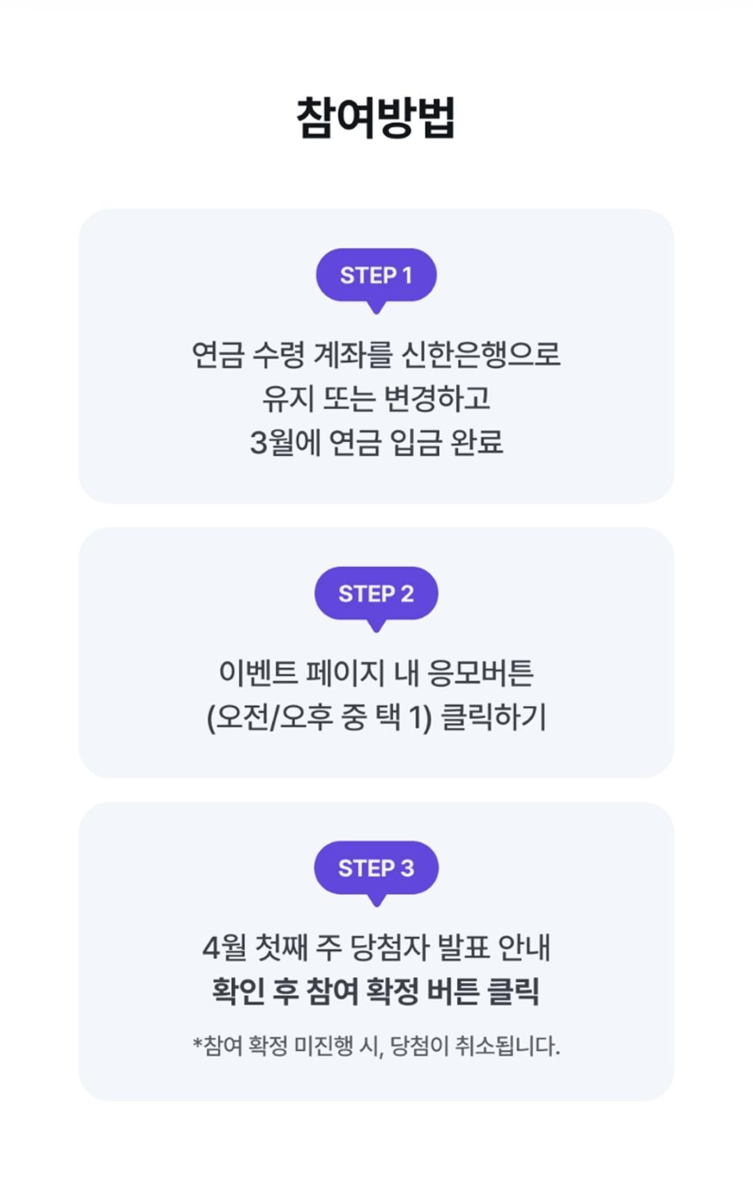 본 이벤트는 신한은행 연금 고객 대상이므로, 연금 수급 계좌를 신한은행으로 지정해야 응모 가능합니다.