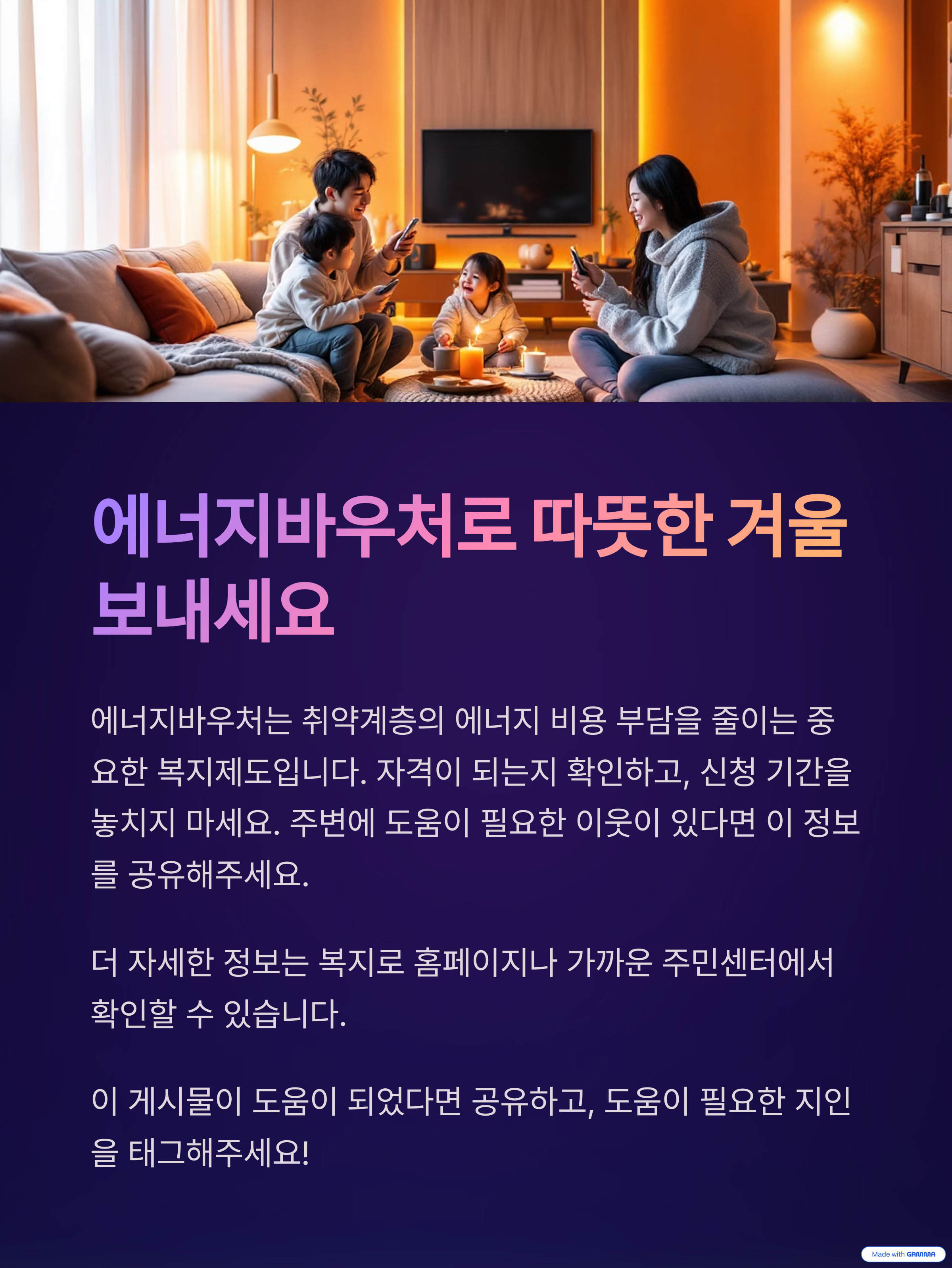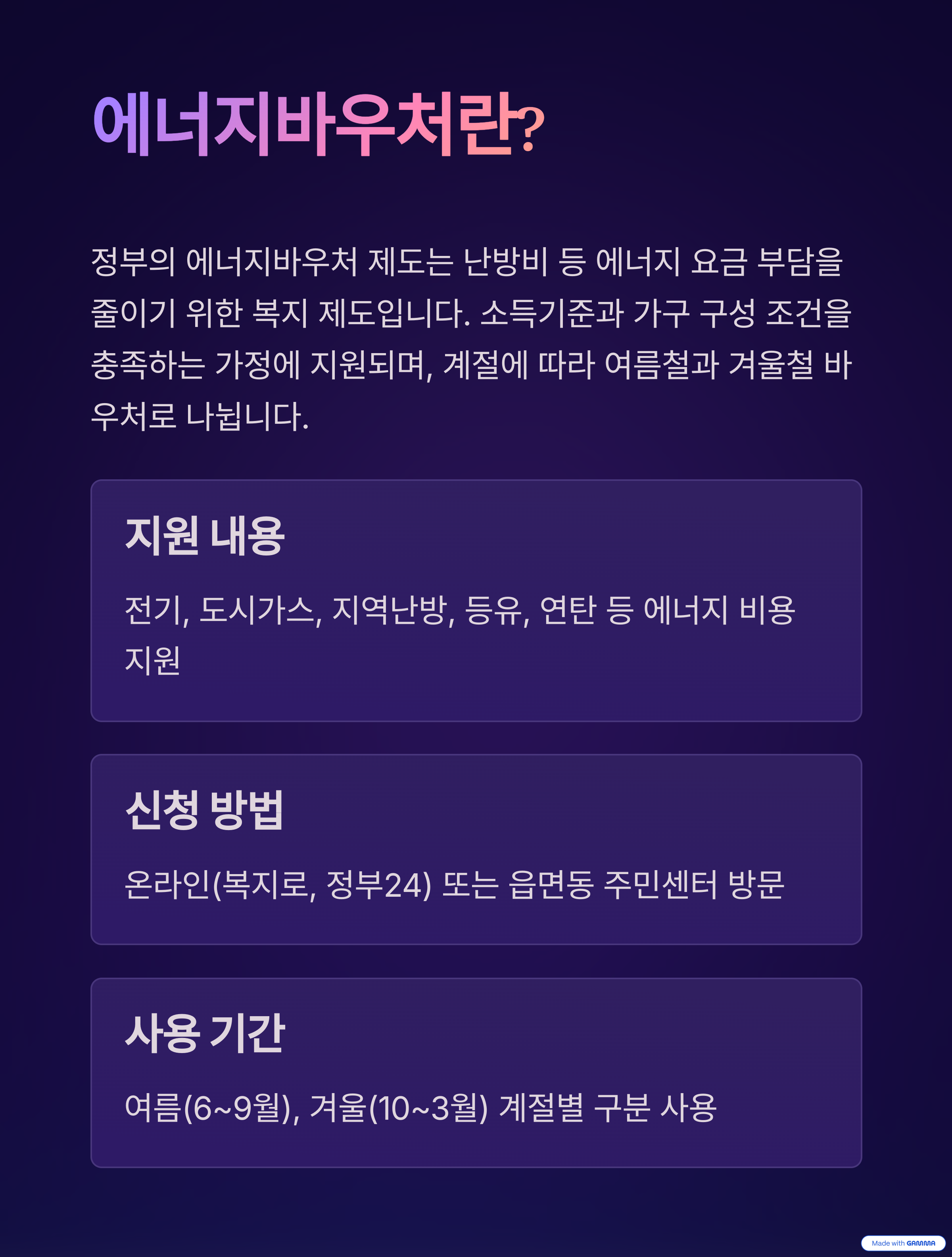 정부의 에너지바우처 제도는 난방비 등 에너지 요금 부담을 줄이기 위한 제도입니다