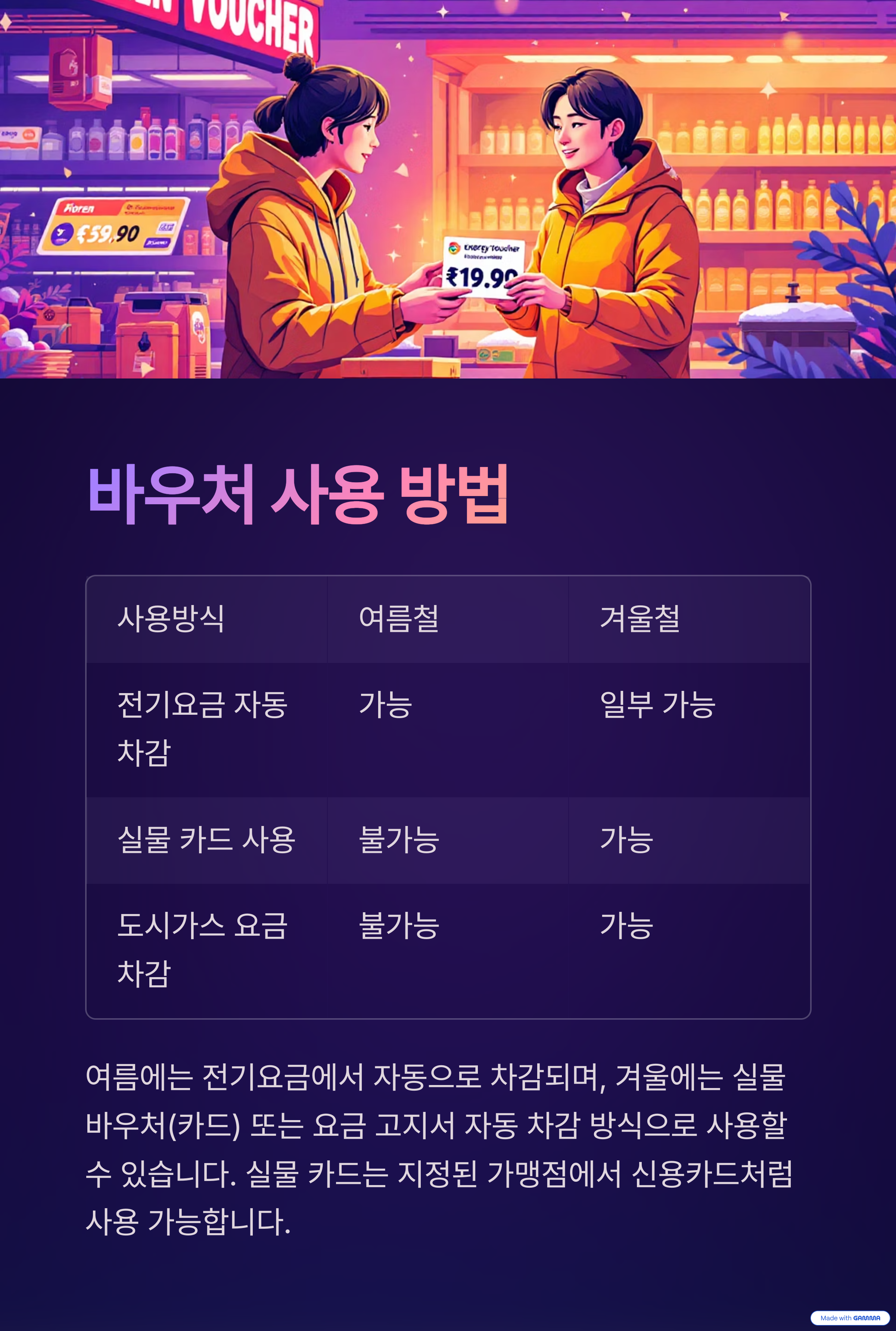 겨울에는 실물 바우처(카드) 또는 요금 고지서 자동 차감 방식으로 사용할 수 있습니다